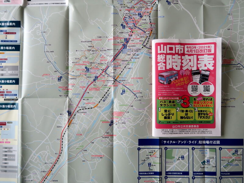 もちろん行政が何もしていないわけではなく、前述したコミュニティバスなどを走らせているほか、昨年9月からは自転車シェアリングも導入。これらの交通をトータルで考えるという観点から、市内の鉄道やバスの時刻表をひとつにまとめ、マップとともに発行してもいます。以前のブログで紹介したパークアンドライド駐車場「置くとバス駐車場」も取り組みのひとつと言えるでしょう。