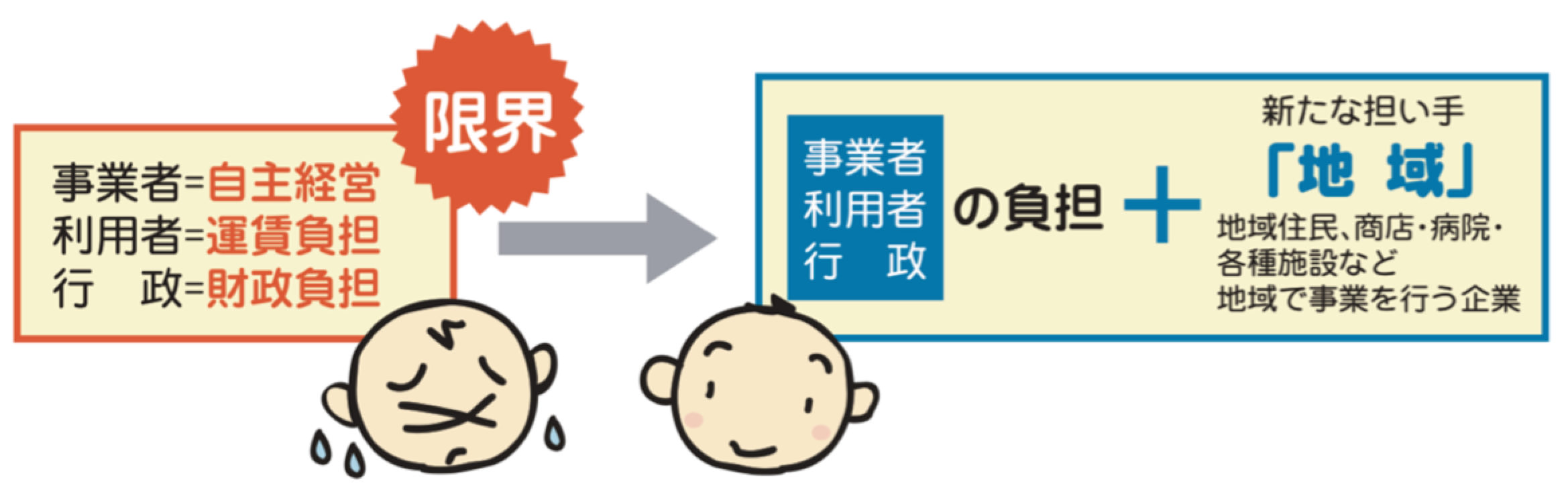 地域住民は、路線や時刻を考えるだけでなく、年に何度も会議を開き、車両への乗り込みヒアリング調査をしながら、より利用しやすい経路やダイヤへと改善を進めているとのことです。ただし運行はタクシー会社が受託しています。行政は取り組みを支援し、地域に適したコミュニティ交通として守り育てていく役目を担っています。