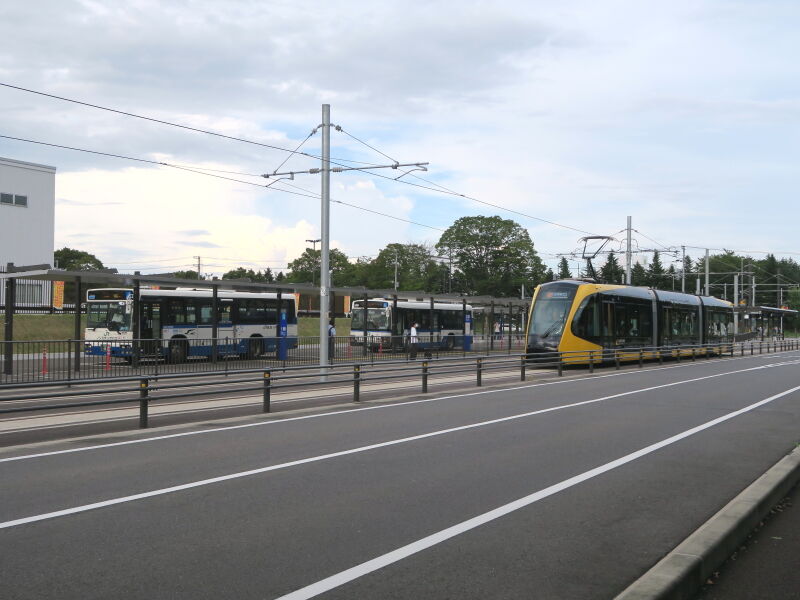 LRTとバスの連絡については、富山ライトレール(現在は富山地方鉄道)富山港線のフィーダーバスの紹介をしたことがあります。あちらは電車とバスを同じ事業者が運行しているので、本数が多く接続がスムーズということもあるでしょう。トランジットセンターで連絡するバスについては、コミュニティバスのように市が運営すれば、融通が効くかもしれません。
