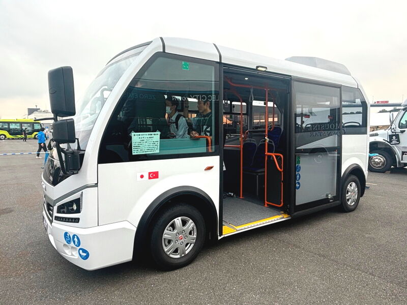 ここでは電気バスの中から気になった車両をいくつか紹介します。まずはアルテックが輸入するトルコ・カルサンの「e-JEST」です。全長5.9mと日野自動車「ポンチョ」より小柄で、デザインは欧風。メカニズムは前輪駆動が特徴で、信頼性の高いBMW製モーターを採用しています。それが関係しているのか、乗った印象は乗用車的で、プジョーの小型商用車をベースにしていた先代ポンチョを思い出しました。すでに長野県や栃木県で導入しているようです。
